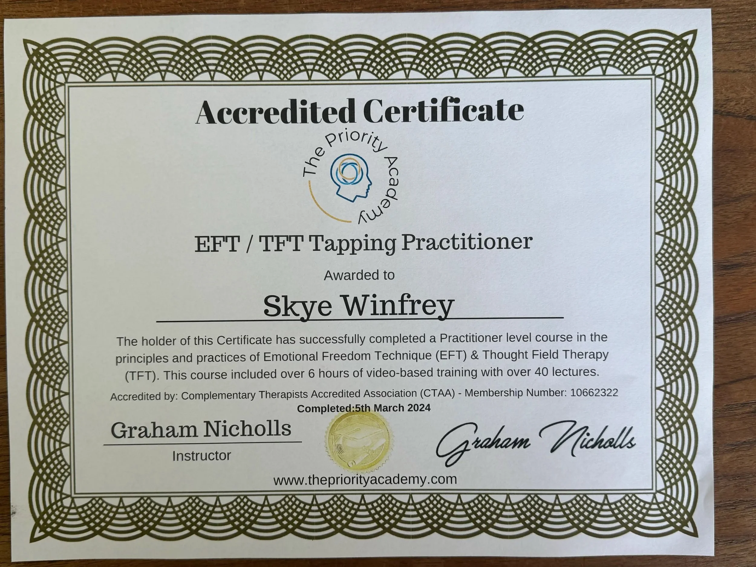 Emotional Freedom Techniques (EFT) and Thought Field Therapy (TFT) are two forms of Energy Psychology comparable to EMDR. These methods, particularly EFT, are evidence-based, and consistently show rapid - sometimes instantaneous - reduction of stress in the nervous system and 'deprogramming' of phobias, anxieties, and triggers